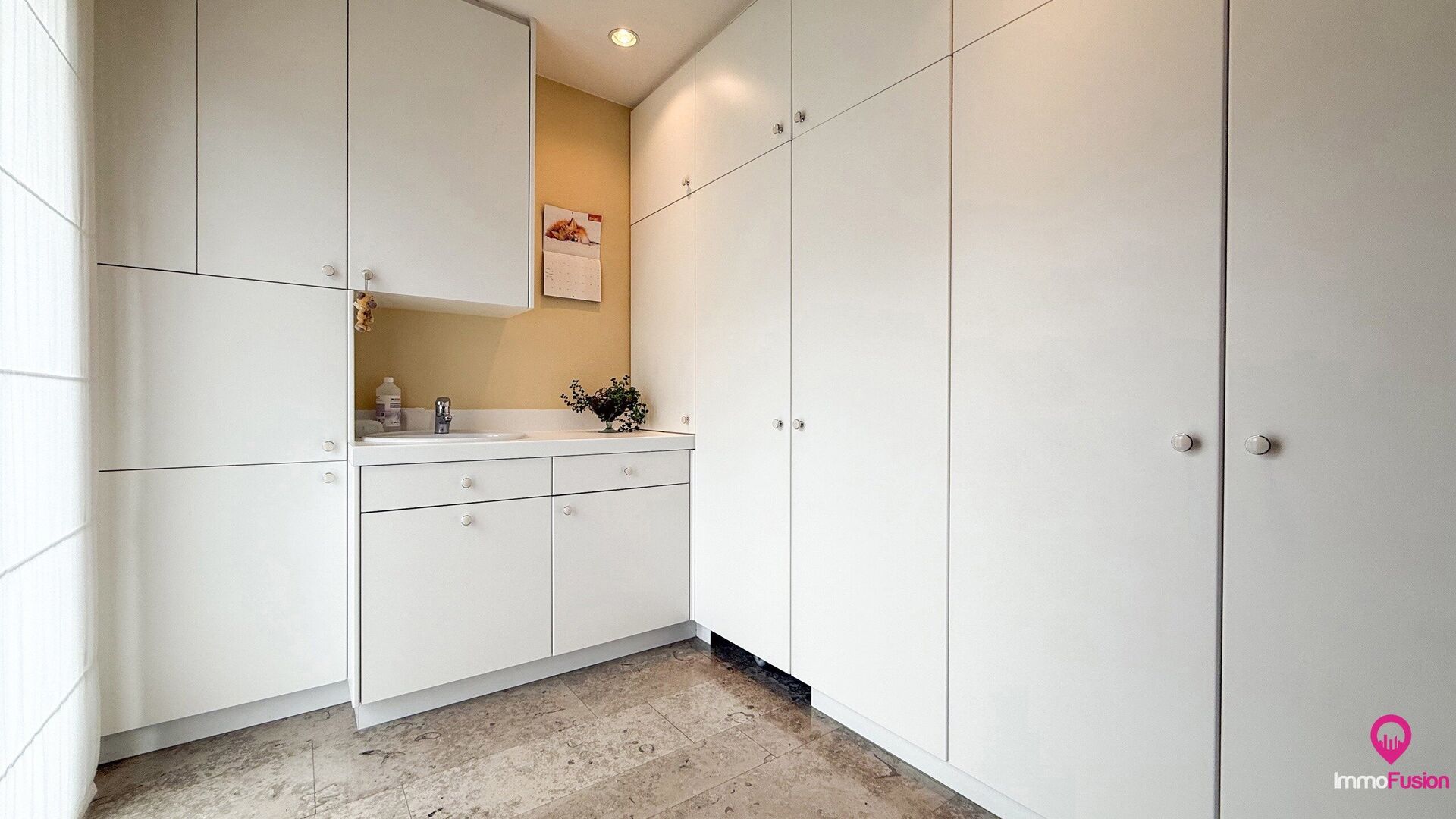 Bij het betreden van de woning komt u in een ruime en uitnodigende inkomhal die meteen een gevoel van openheid en degelijkheid uitstraalt. Het gelijkvloers omvat verder een lichtrijke woonkamer met aangename leefruimtes, een functionele keuken, een volwaardige slaapkamer, een badkamer, een bureauruimte en een praktische wasplaats. De woning is tot in de kleinste details afgewerkt met duurzame en hoogwaardige materialen, wat zorgt voor een tijdloze uitstraling en een hoog wooncomfort. Deze doordachte afwerking is zichtbaar in alle ruimtes en onderstreept de kwaliteit van het geheel. De indeling maakt gelijkvloers wonen perfect mogelijk. Vanuit de woning heeft u directe toegang tot een mooi en zonnig terras, waar het aangenaam vertoeven is tijdens de lente- en zomermaanden en waar u in alle rust kunt genieten van het buitenleven.