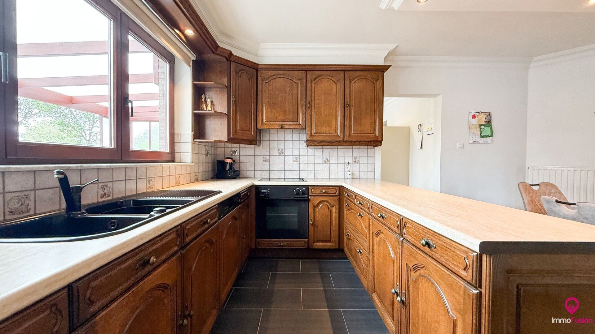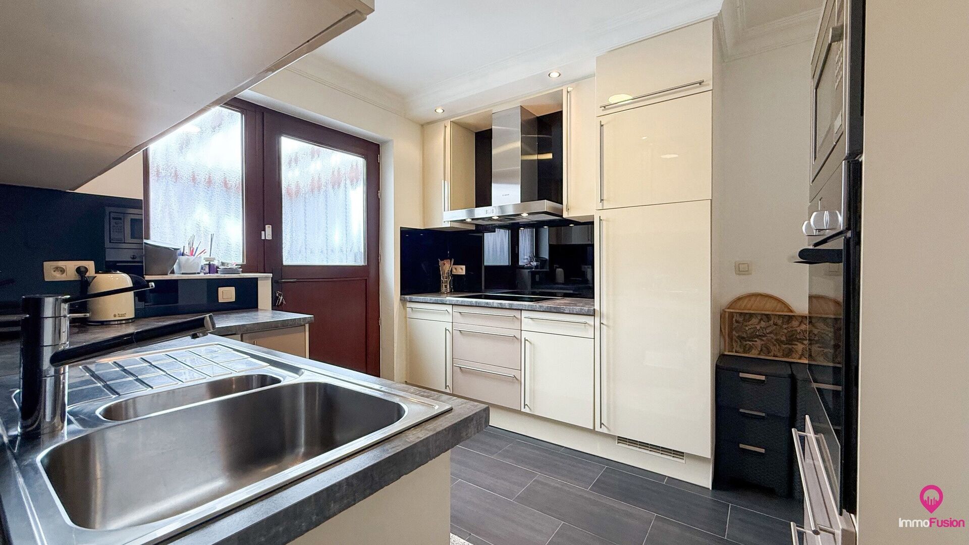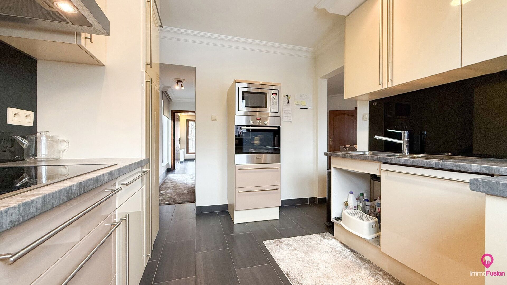 Vanuit de living stap je in de verzorgde keuken met voldoende ruimte om er ook te eten. Aansluitend vind je een moderne 2e keuken, uitgerust met fornuis, lavabo, vaatwasser en oven en micro-oven, en daarnaast nog een praktische berging.