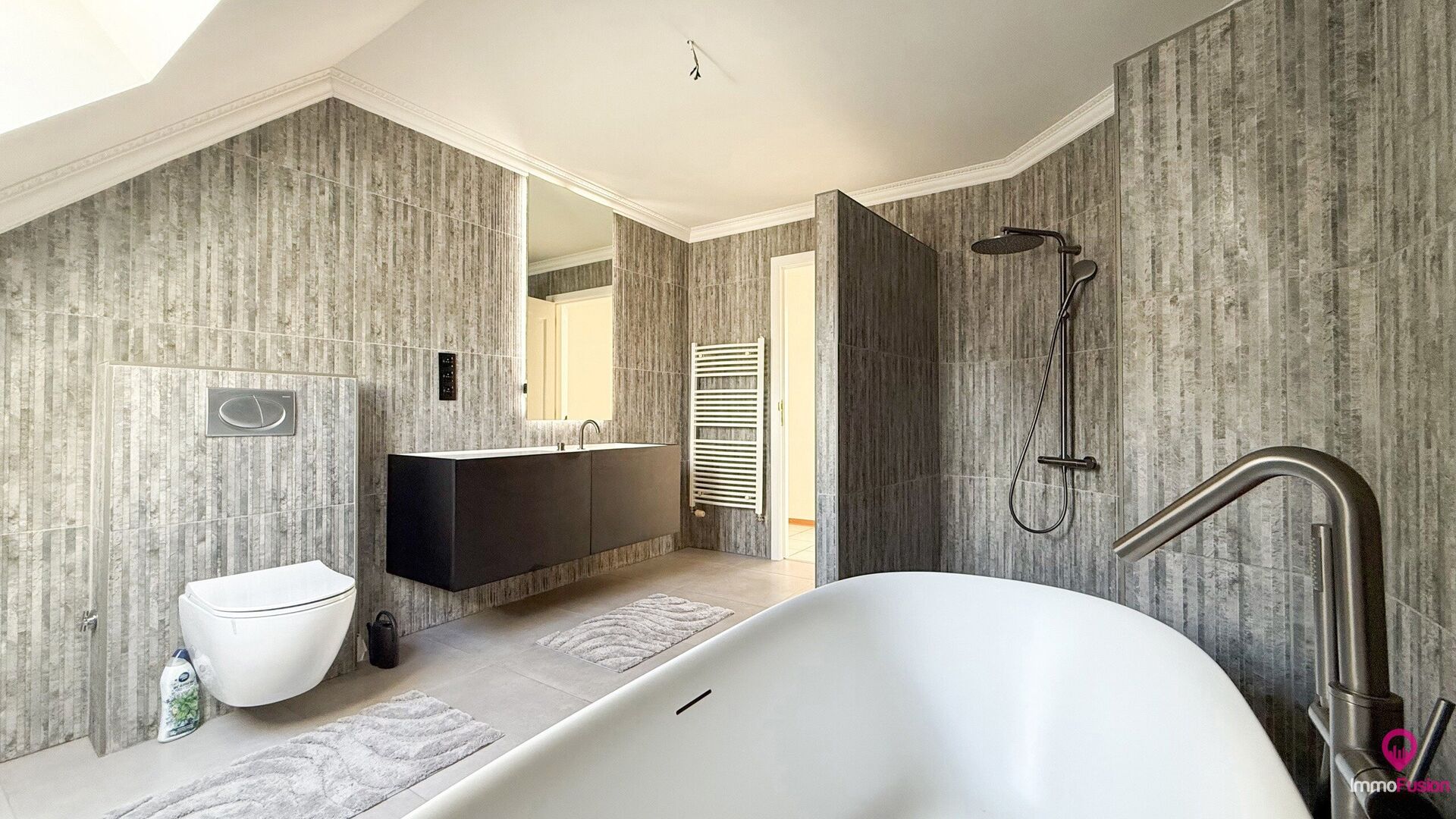 Op de bovenverdieping zijn er 4 slaapkamers en een recent vernieuwde badkamer die is voorzien van een ligbad, inloopdouche, toilet en lavabo.