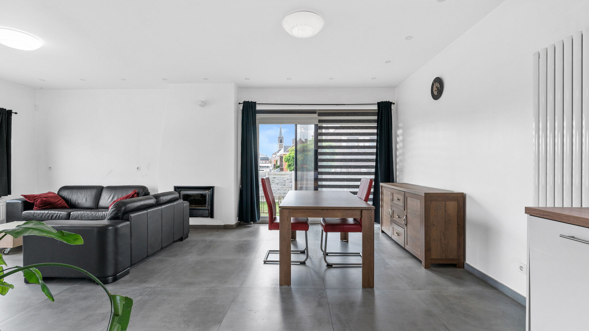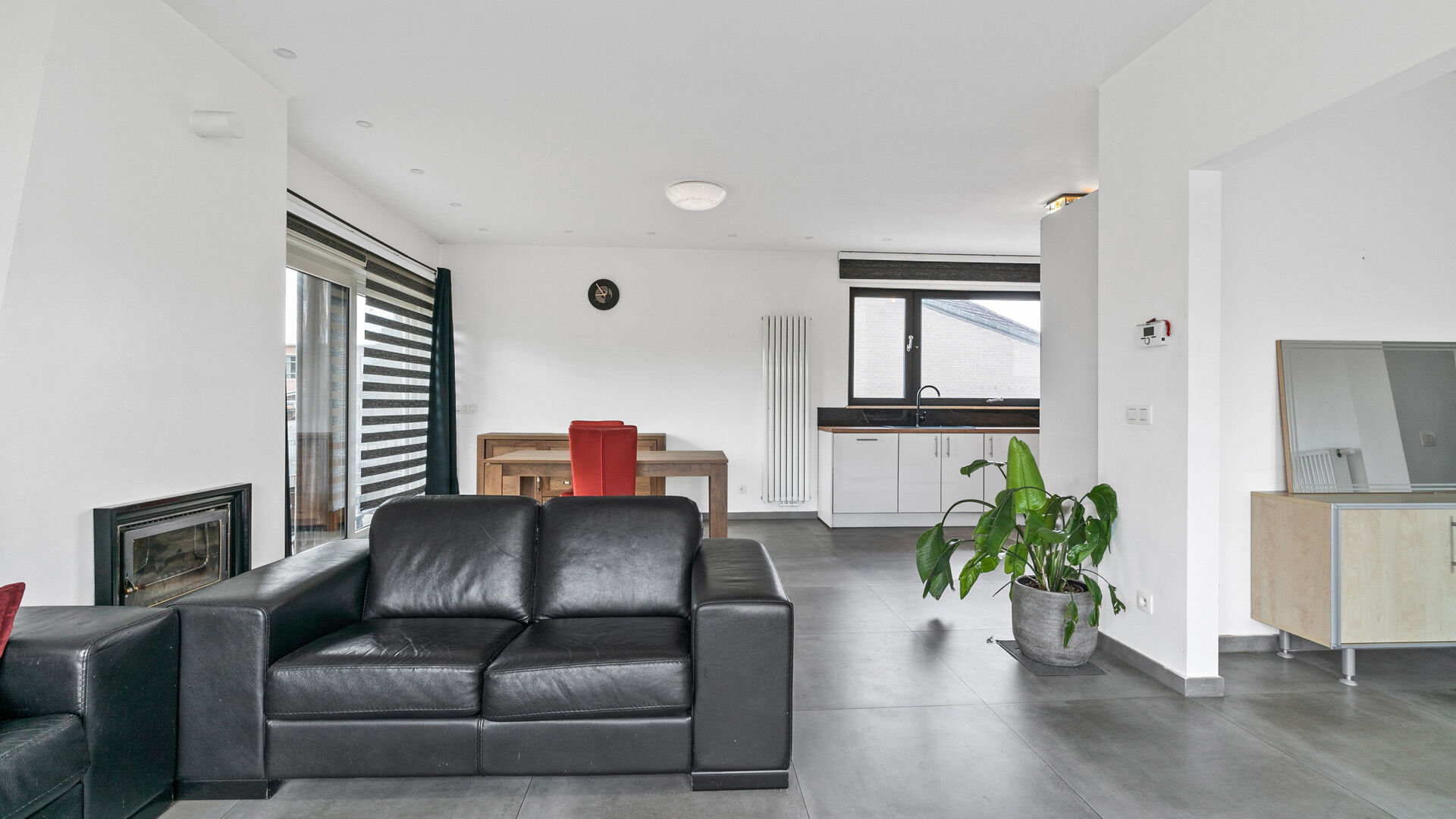 Open leefruimte met houthaard