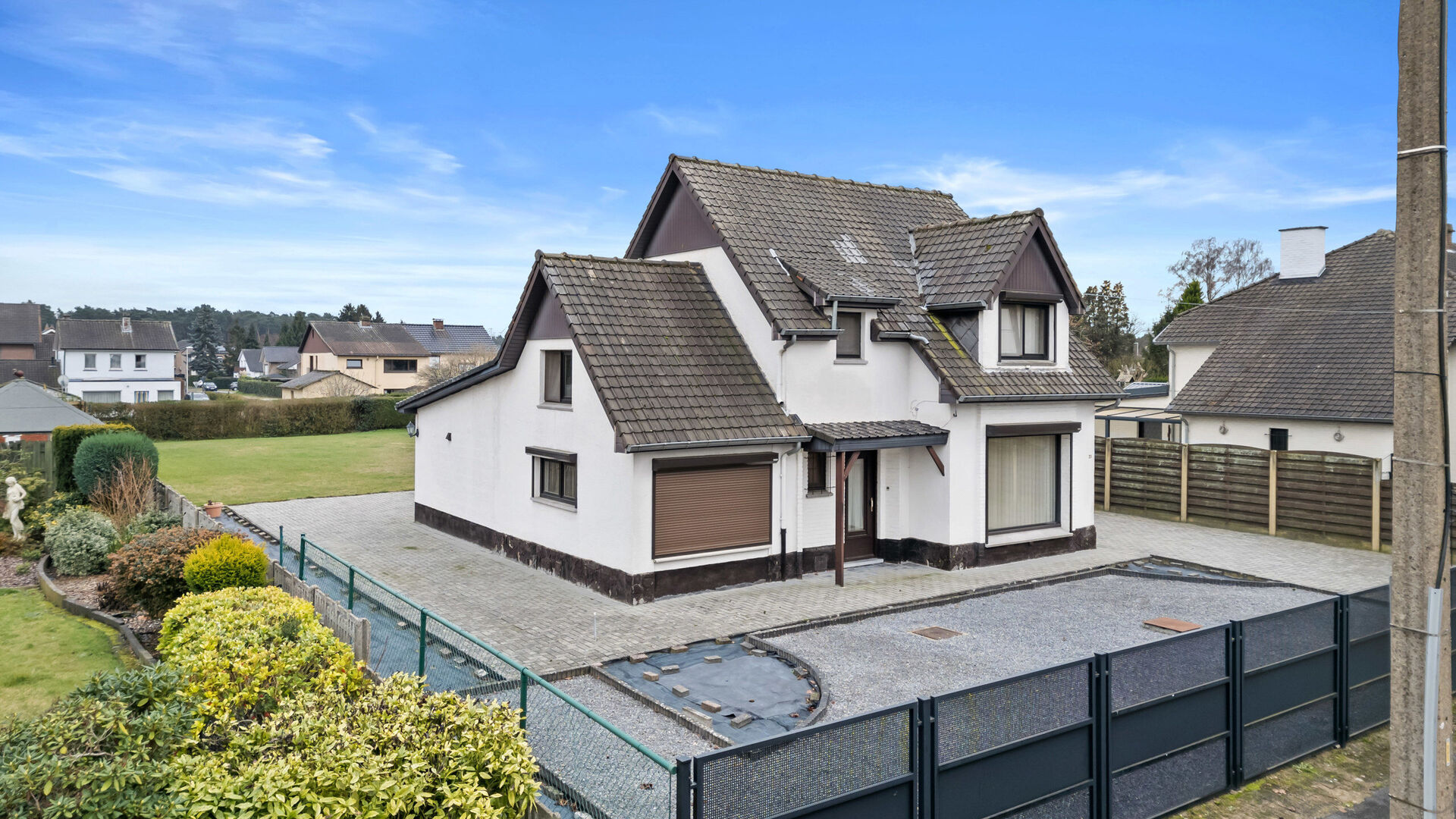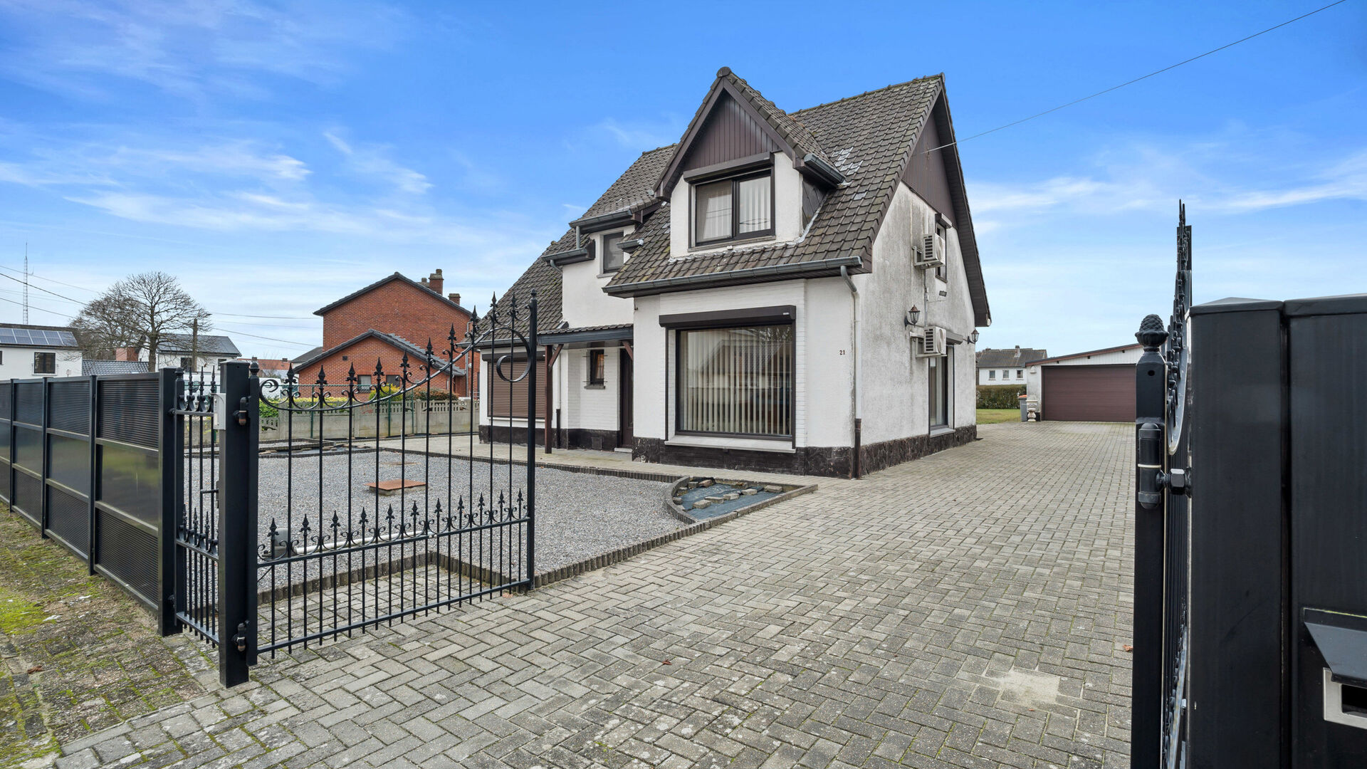 Op een rustige en aangename locatie in Maasmechelen, ter hoogte van Koninklijkestraat 21, bevindt zich deze open bebouwing op een uitzonderlijk ruim perceel van 10 are, bereikbaar via een elektrische poort. Dit zorgt voor extra privacy, veiligheid en comfort.