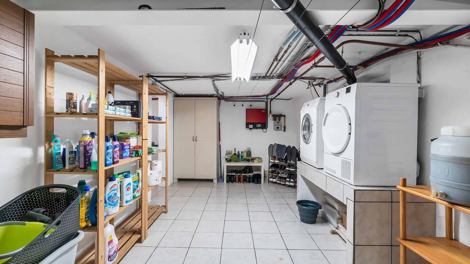 Extra bergruimte vindt u in de volledig betegelde en afgewerkte kelder, voorzien van een grondwaterpomp.