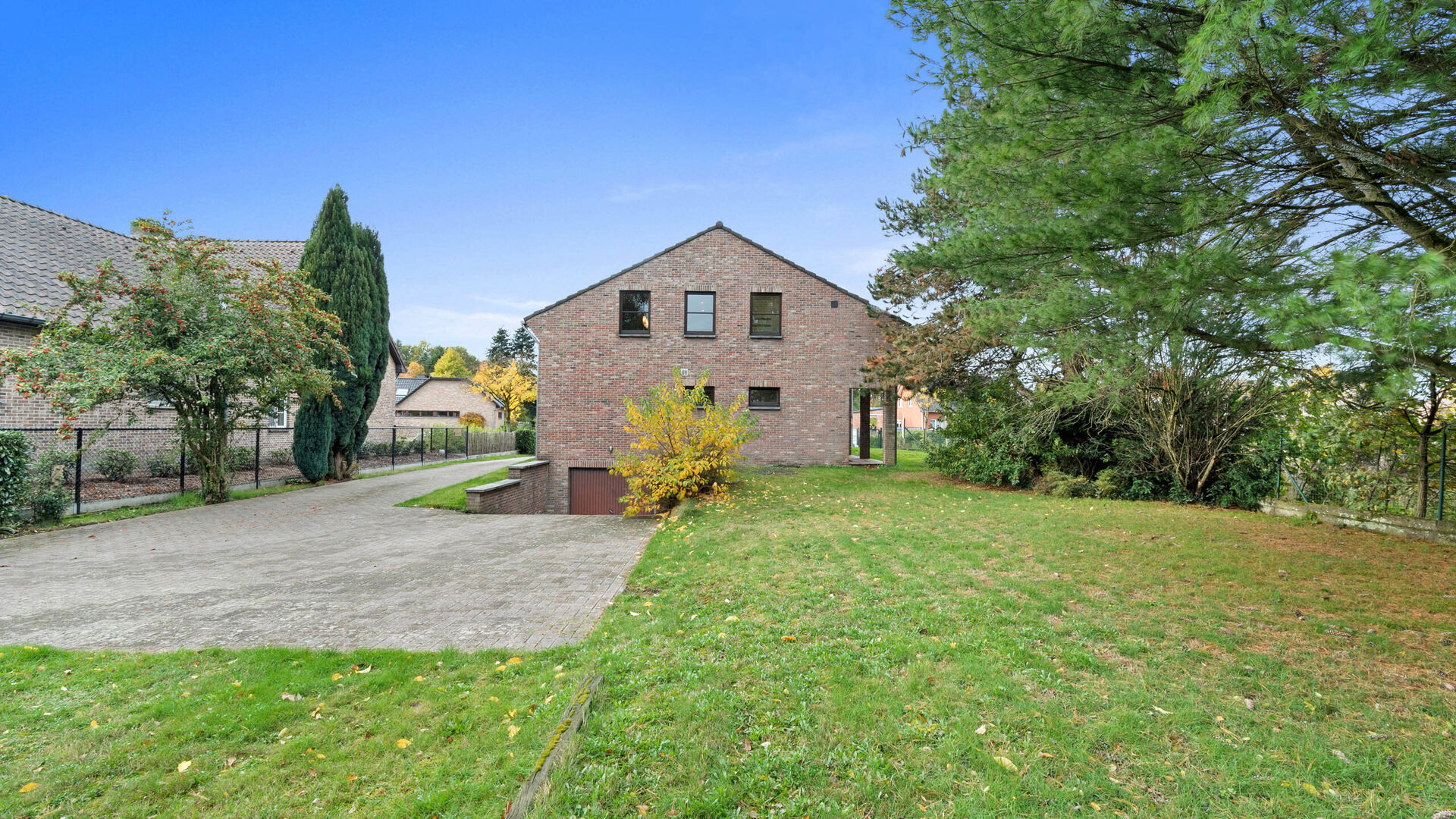 De woning is gelegen op een ruim perceel van 9a48ca en beschikt over een mooie tuin met zowel een grasgedeelte als klinkers. Rechts van de woning is er een oprit die toegang biedt tot de garage in de kelder. Links bevindt zich een poortje met een gezellig houten terras, ideaal om buiten te genieten in alle rust.