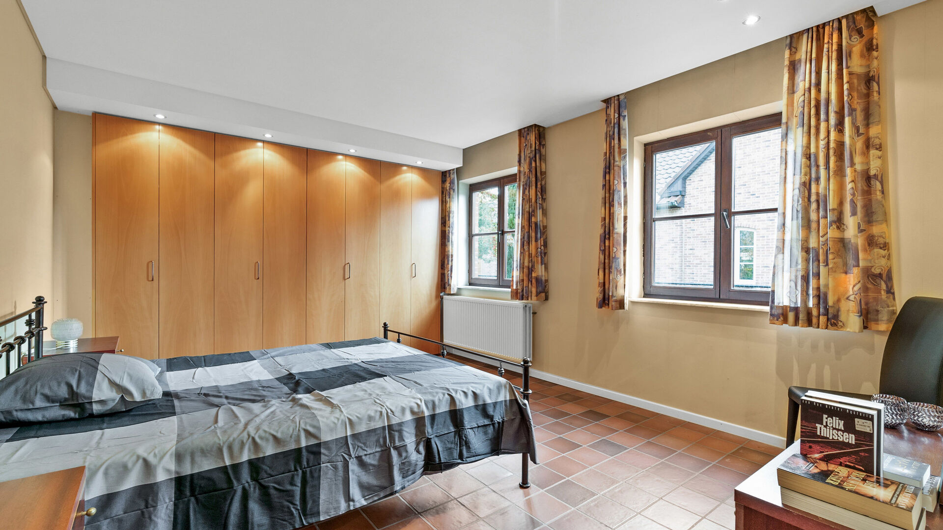 • Rechts bevindt zich slaapkamer 1, uitgerust met inbouwkasten en verwarming.