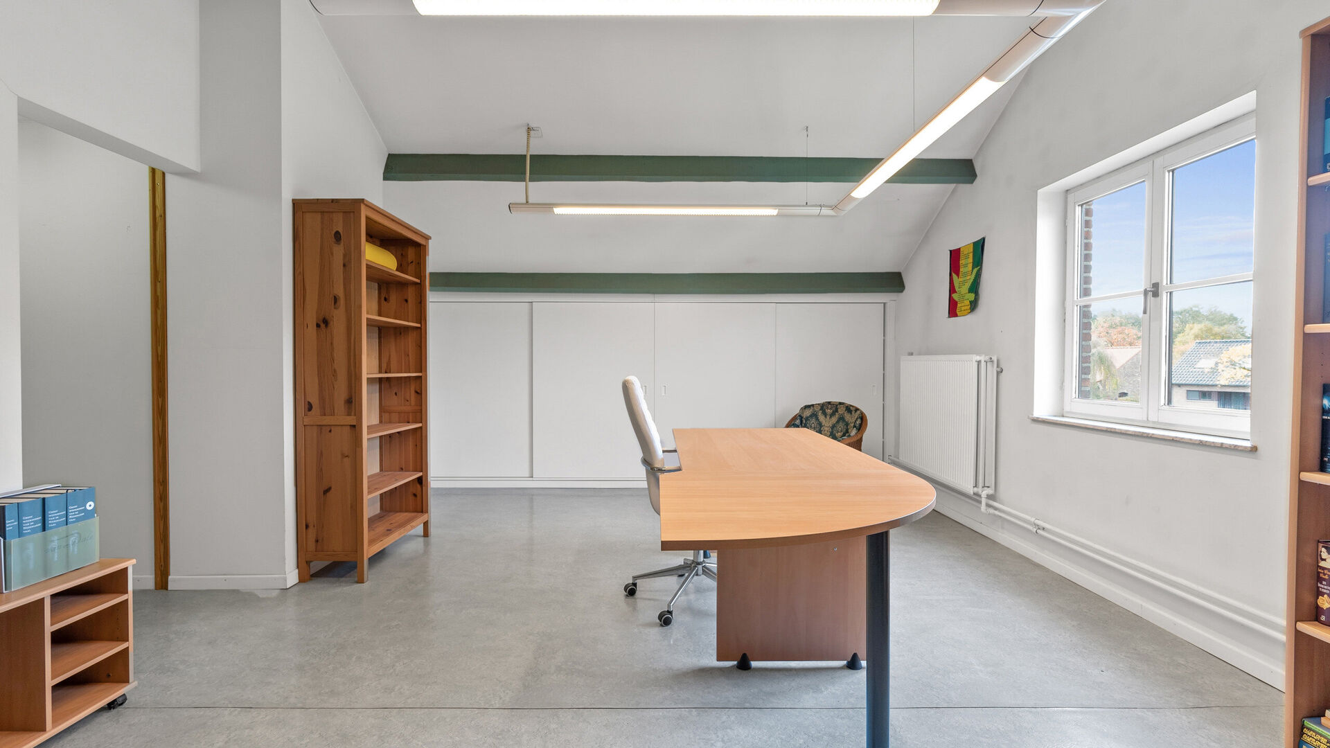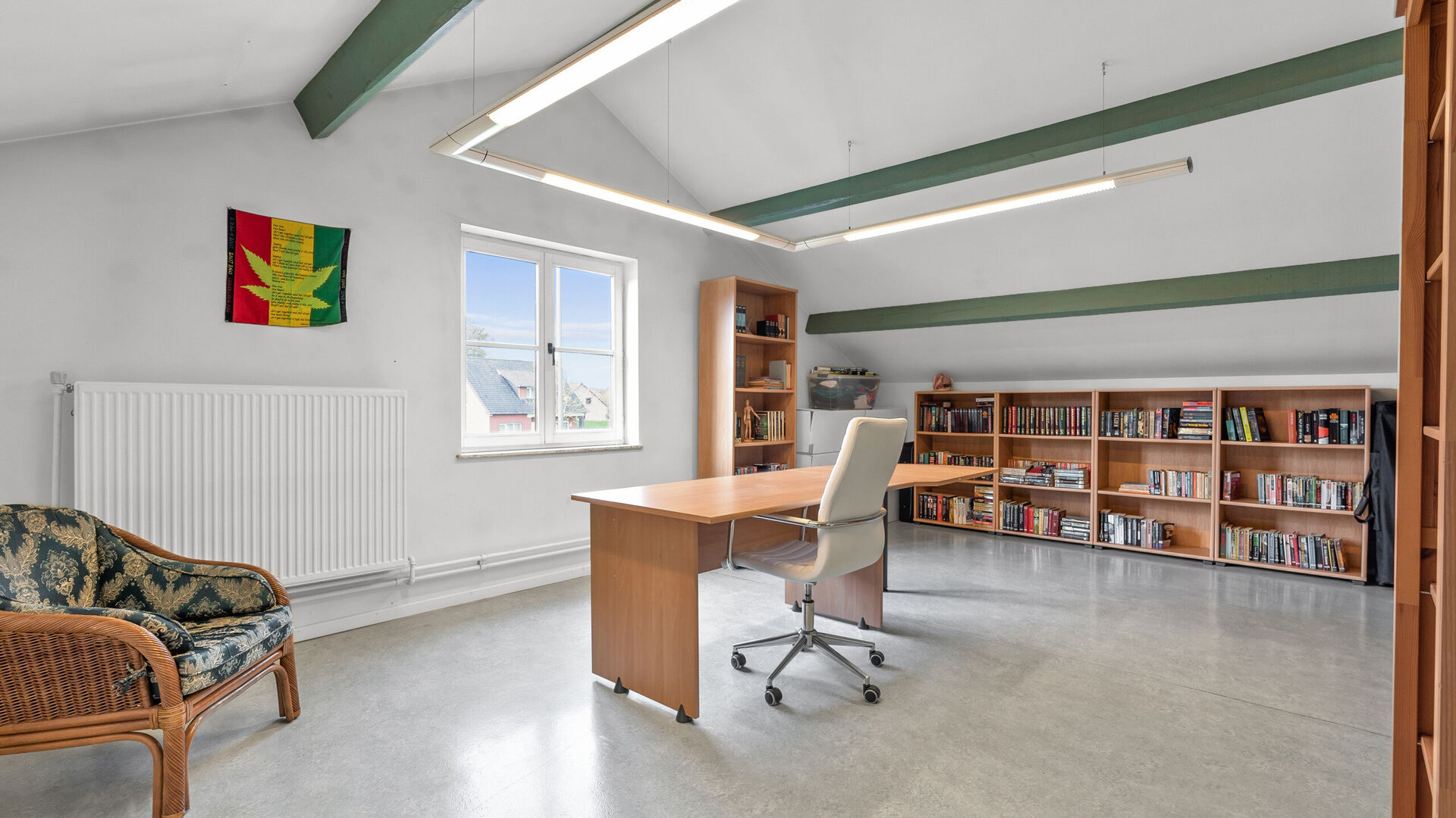• Slaapkamer 4 (zolderkamer): vinylvloer, verwarming, TL-verlichting en groot raam. Deze ruimte kan gebruikt worden als slaapkamer, bureau, hobbykamer of multifunctionele ruimte.